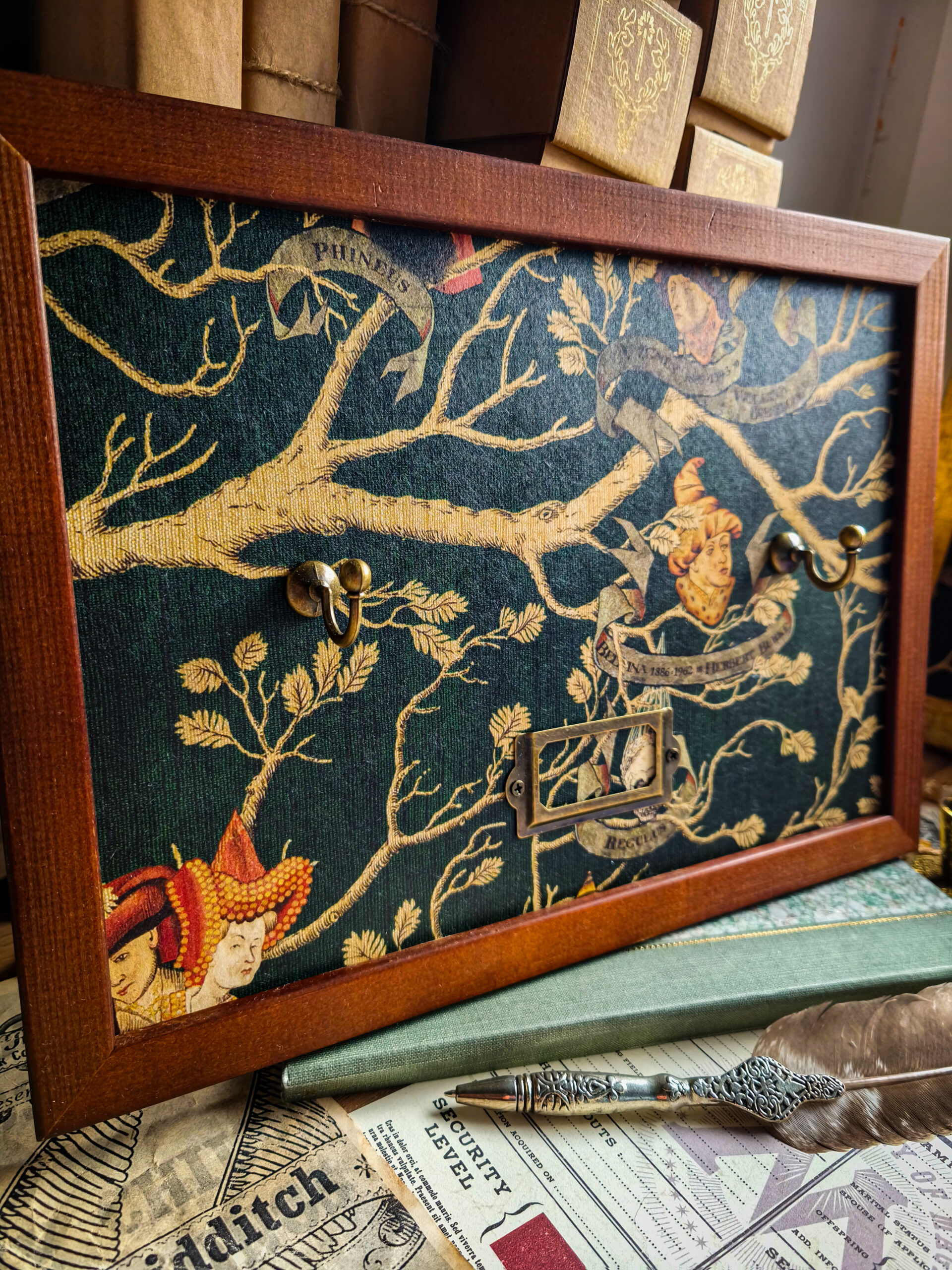 AkcesoriaBrązowa ramka na różdżkę z tapetą rodziny Black wykonana z drewna sosnowego